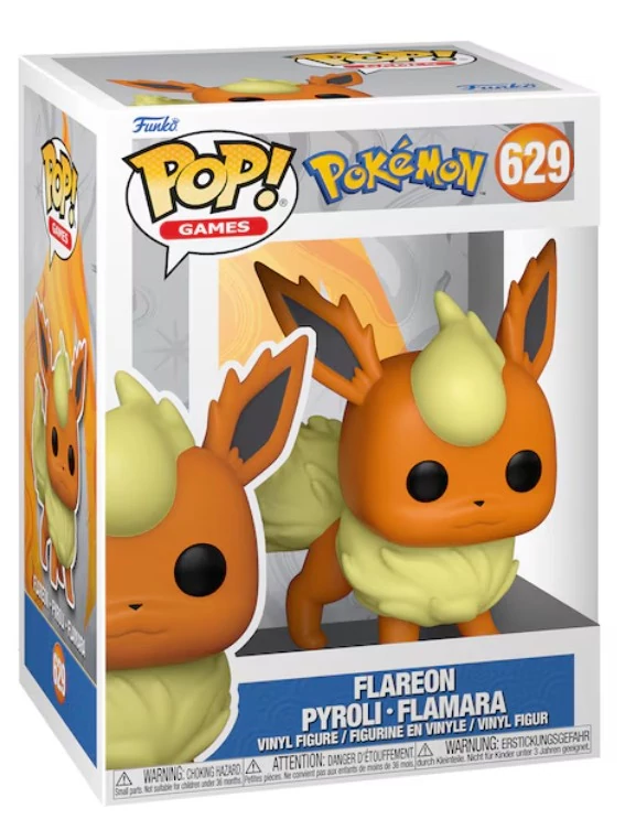 A Funko POP! Pokémon – Flareon vinyl figura egy hivatalos Funko gyártású gyűjtői darab, amely a Pokémon világ egyik legismertebb Tűz típusú Pokémonját jeleníti meg jellegzetes, nagyfejű POP! dizájnban.
