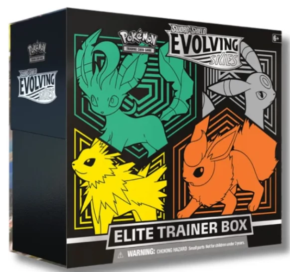 A Pokémon TCG Evolving Skies Elite Trainer Box az egyik legkeresettebb Sword & Shield korszakbeli szett, amely az Eeveelution Pokémonokra és a Dragon típusokra épül.