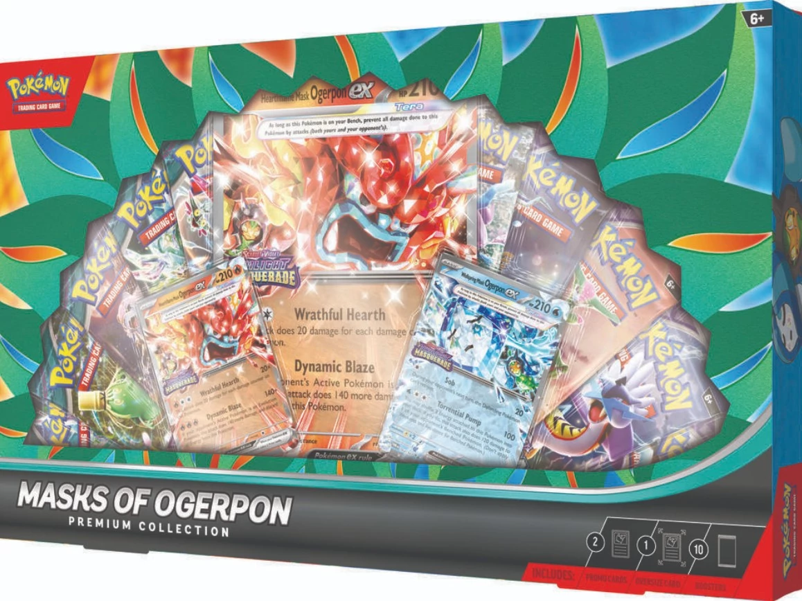 A Pokémon ex Box: Masks of Ogerpon – Premium Collection (2025) egy különleges, gyűjtői igényekre szabott Pokémon TCG doboz, amely az Ogerpon témára épülő ex promó kártyákat és bőséges bontási élményt kínál.