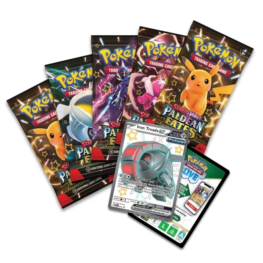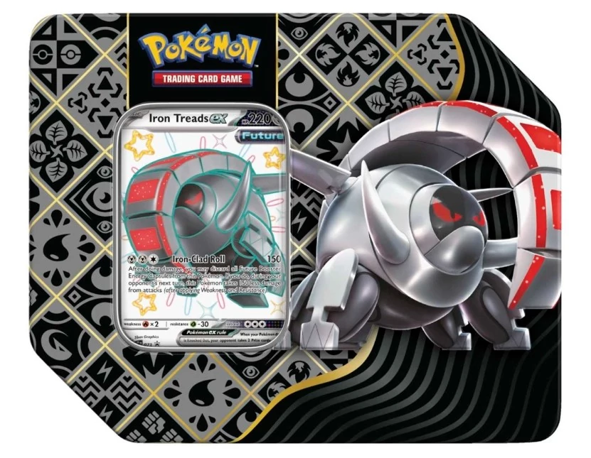 Ismerd meg a Pokémon TCG: Scarlet & Violet – Paldean Fates Tin Shiny Iron Treads ex terméket, amely kiváló választás azoknak, akik szeretnének garantált ex promókártyát és több bontási lehetőséget egyetlen dobozban.