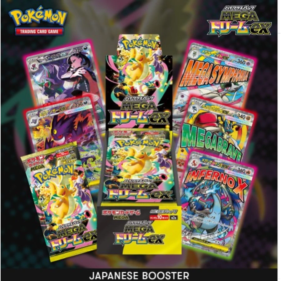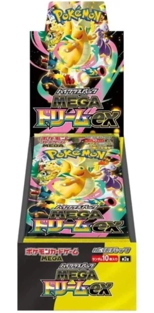 A Pokémon TCG – Mega Dream ex Japán Booster Display egy hivatalos japán Pokémon kártya kiadás, amely egy teljes booster display dobozt tartalmaz. A japán Pokémon kártyák híresek kiváló nyomtatási minőségükről, éles grafikájukról és különleges holografikus kártyáikról.